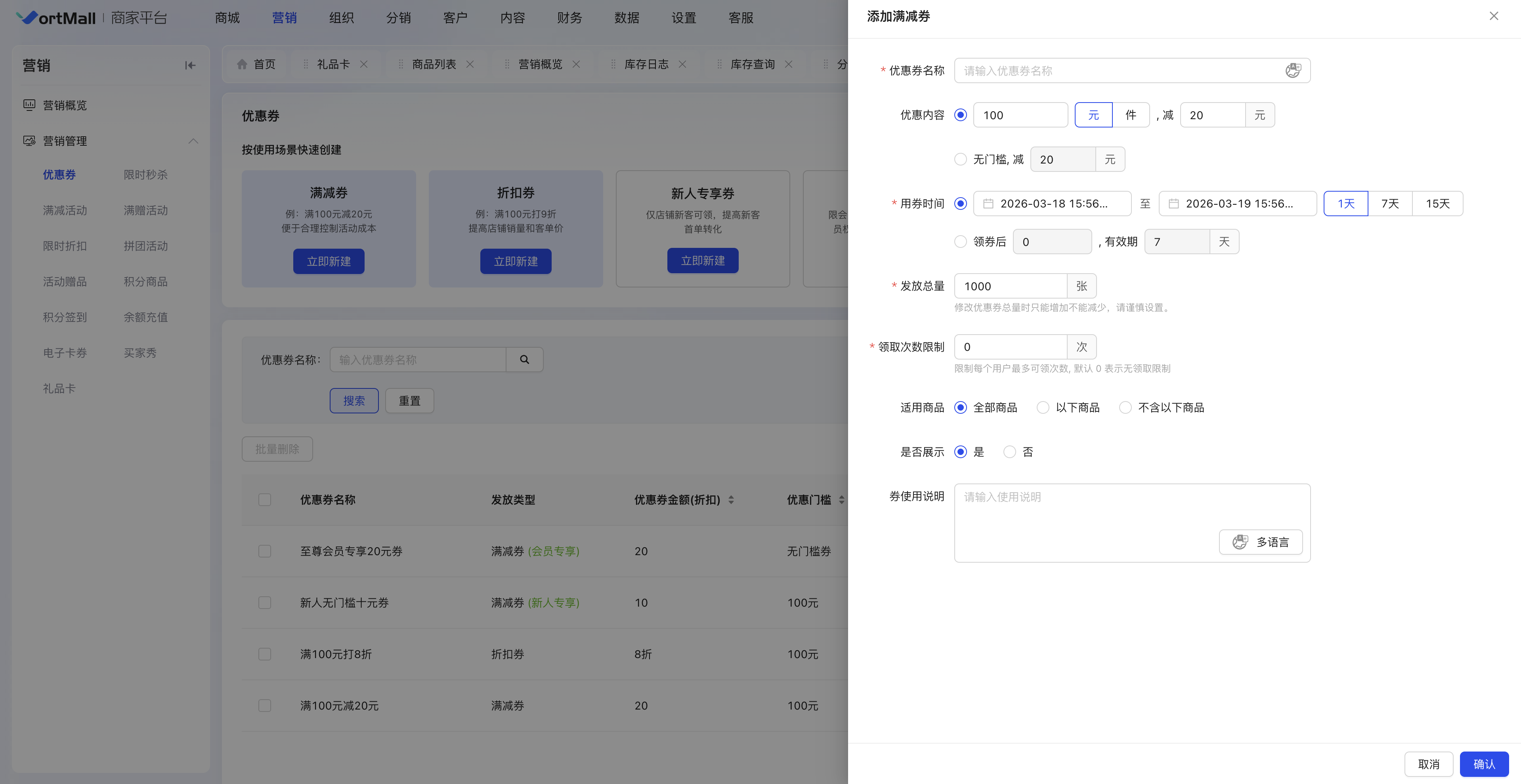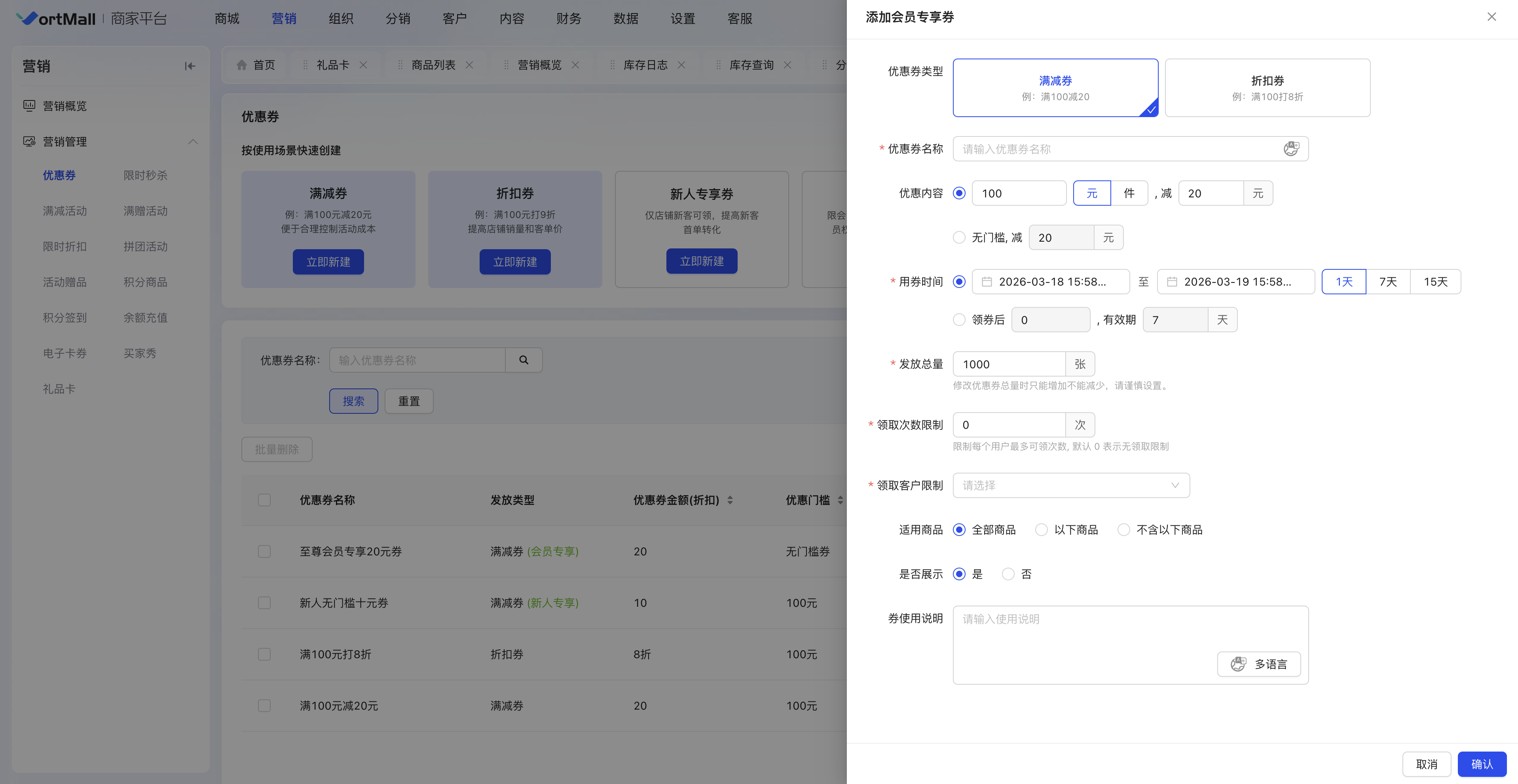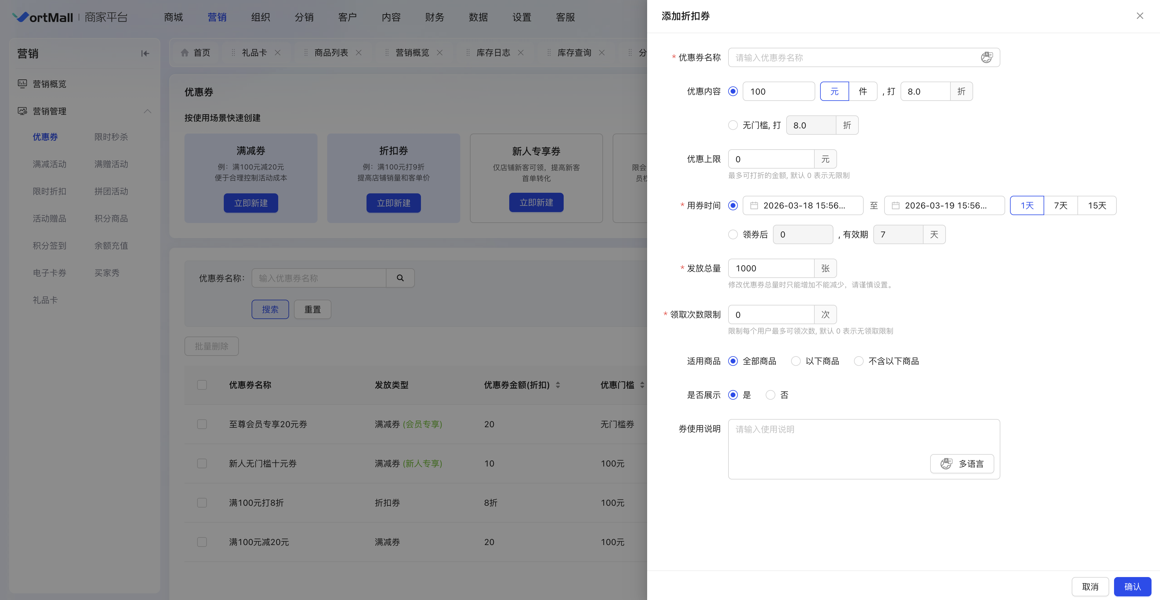 (注意:重要促销活动前,建议提前创建并测试优惠券功能)