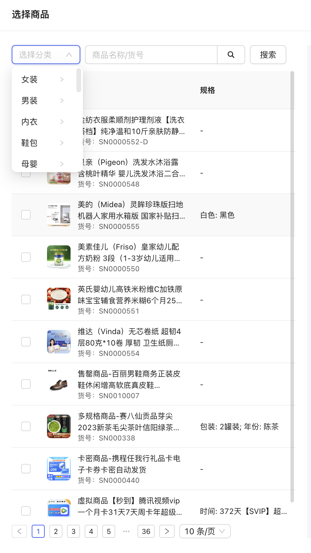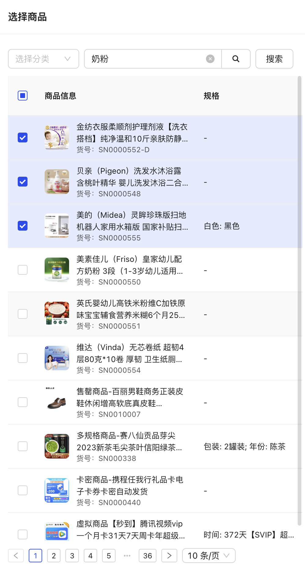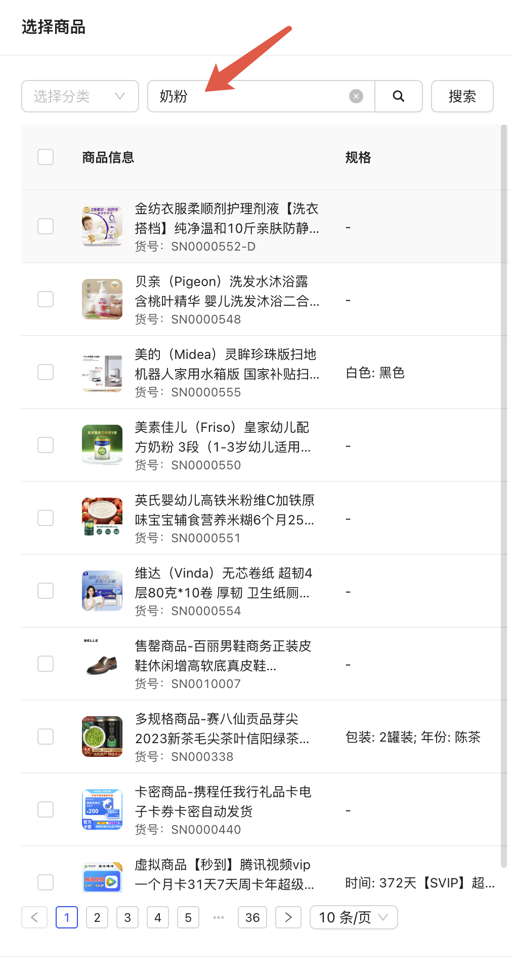 - 可以直接在商品信息中找到直接需要的商品进行选择。