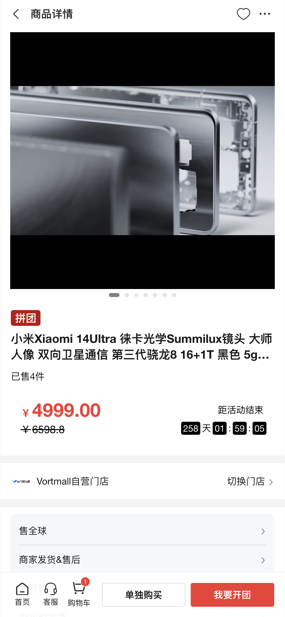 消费者进入门店拼团商品详情页,选择「我要开团」,选定购买数量后提交订单(点击「单独购买」则按商品原价结算)。