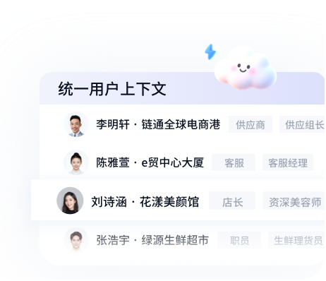 网关透传用户身份、业务归属(店铺/供应商)与权限列表,下游服务在一个统一的上下文中取数并执行权限判断